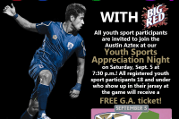 AZTEX FINAL HOME GAME OF THE YEAR AGAINST SEATTLE SOUNDERS 2 SEPTEMBER 5TH TEAM TO HOST YOUTH SPORTS APPRECIATION NIGHT… Read more Austin Aztex | Sábado 5 de Septiembre